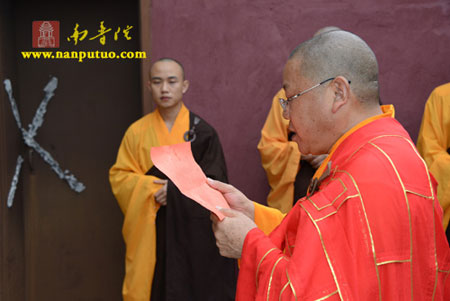 2013年5月13日,农历四月初四,欣逢南无大智文殊师利菩萨圣诞日,龙天欢喜,诸佛护佑,厦门南普陀寺举行洪宗法师出关仪式。受南普陀寺方丈则悟法师委托,堂主智常法师为出关仪式主法。