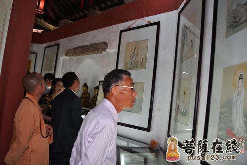 出席开幕式的领导嘉宾有:上海市佛教协会副秘书长、上海松江区佛教协会会长、上海西林禅寺方丈悟端大和尚,松江区民宗办副主任费水弟,松江区佛教协会副会长、福田净寺监院明非法师,松江区佛教协会副会长、大方禅院监院能慧法师,中国书画家协会副主席、重庆市书法美术院院长方百川,上海市美术家协会海墨画会副会长恽甫铭。开幕式由松江区佛教协会副会长陆春彪主持。