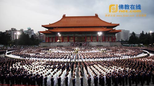 慈济浴佛大典不分宗教、种族,广邀大众浴佛净心,12日中正纪念堂浴佛分为两场次。第一场浴佛典礼在晚上6时开始,第二场7时30分,现场布置一千多尊的“宇宙大觉者”,象征佛陀疼惜苍生多苦难、不忍地球受毁伤,立于宇宙间默默怜视着地球,于娑婆宇宙间遍洒甘露。
