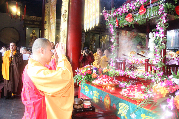 2013年5月17日(农历四月初八)浴佛节,南京栖霞寺方丈隆相大和尚率两序大众举办了进行对释迦牟尼的纪念活动——功德法会。
