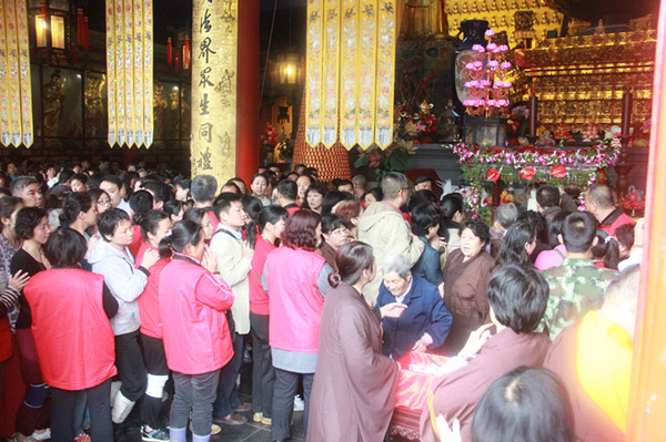 今年的浴佛节恰遇2013金陵第三届礼佛文化月,释迦摩尼佛顶骨舍利在栖霞古寺对外供奉,因此,栖霞古寺的此次浴佛法会因缘殊胜,来自北京、湖北、上海、浙江、武汉、西藏、重庆、合肥、芜湖等各地的信众及团体早早的前来礼拜参加,预计今天的栖霞古寺礼佛文化月前来瞻礼佛顶骨舍利的人数将达到新的高峰。