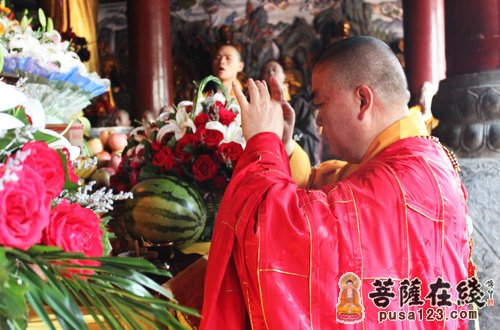 菩萨在线河南讯 2013年5月17日,农历四月初八,为释迦牟尼佛诞辰日。禅宗祖庭少林寺举行一年一度的“浴佛节祈福大法会”,以纪念佛祖诞辰2557周年,并以此法会功德祈福世界和平、风调雨顺、国泰民安、正法久住。法会由中国佛教协会副会长、河南佛教协会会长、嵩山少林寺方丈永信大和尚主持。少林寺常住院僧众、少林海外弟子及十方善信等数千人参加此盛会,共沐佛恩,同沾法喜。