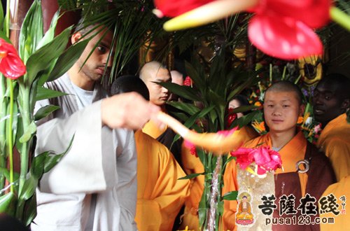 少林海外弟子浴佛(图片来源:菩萨在线 摄影:邹相)