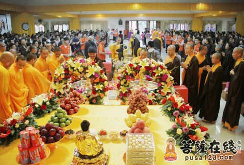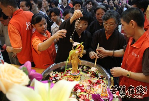 菩萨在线广东讯 “圣洁的天水,参悟千年的偈语;地涌的莲花,洗净众生的尘垢。”2013年5月17日,农历四月初八浴佛节,为纪念佛祖诞辰2557周年,深圳弘法寺隆重举办了浴佛节暨千人皈依大法会,祈福世界和平、风调雨顺、国泰民安。