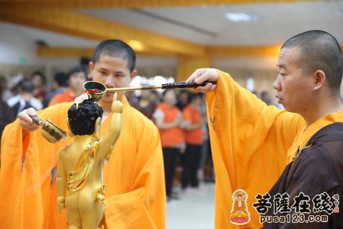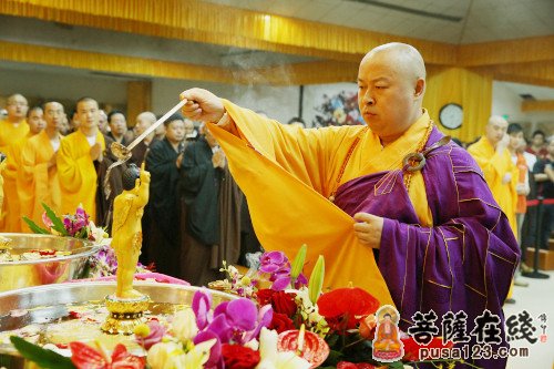 中国佛教协会副会长、海南省佛教协会会长、深圳弘法寺方丈印顺法师为佛陀法身沐浴