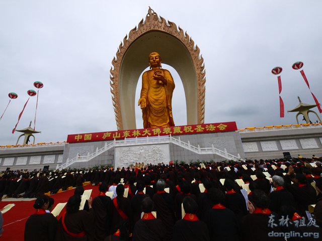 3013年5月17日,江西庐山东林寺举行东林大佛装藏祝圣法会。各地高僧大德、居士信众、游客等逾一万人前往参加庆典。由中国佛教协会咨议委员会副主席、山西省佛教协会会长根通长老,中国佛教协会副会长、江西佛教协会会长、佑民寺方丈纯一法师,江西庐山东林寺方丈大安法师等为法会主法。48米高的金色东林大佛下,万人虔心念佛,瞻仰佛容,法喜充满。