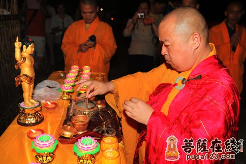 传灯正式开始(图片来源:菩萨在线 摄影:慧悟)