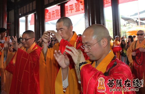 上午10时15分大雄宝殿内举行平熙法师升座仪式。上海市佛教协会副会长、上海居士林林长周富根居士主持升座典礼。由觉醒大和尚为平熙法师送祖衣,圆山长老为平熙法师送念佛珠,妙灵长老为平熙法师送具,慧明大和尚为平熙法师送如意,光慧大和尚为平熙法师送拂尘,世良大和尚为平熙法师送钵,悟端大和尚为平熙法师送柱杖,照诚大和尚为平熙法师送锡杖。最后由照诚大和尚为平熙法师送位,送至大雄宝殿佛前中,平熙法师三拜佛陀。