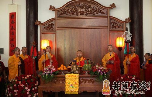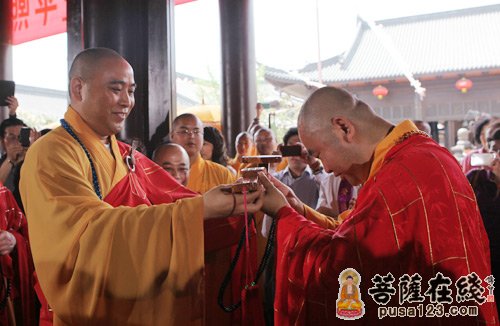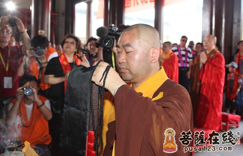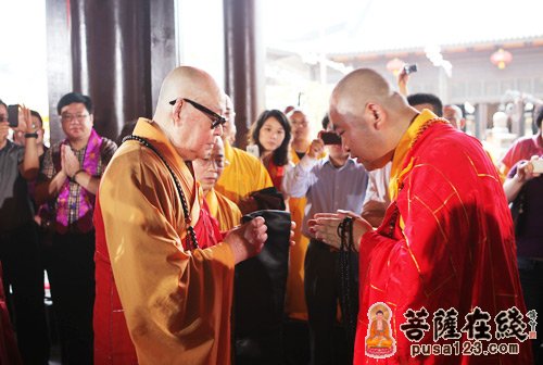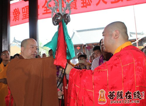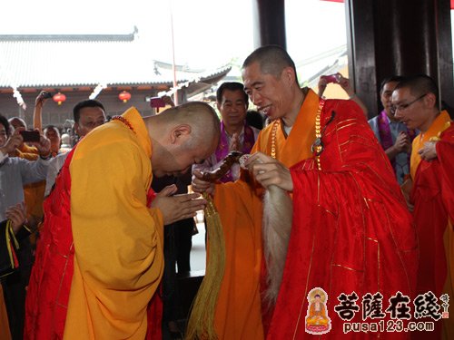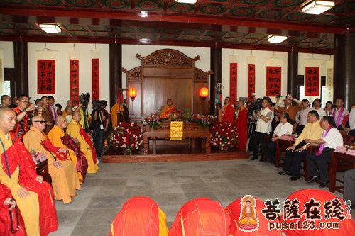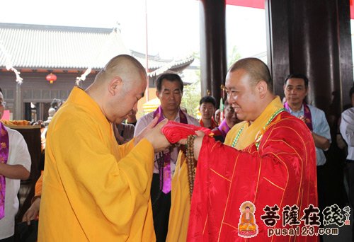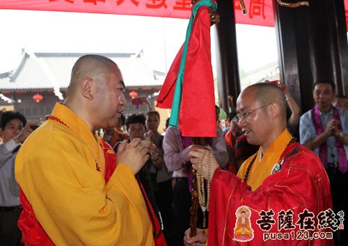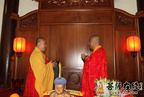 领导及嘉宾先至法堂就座。由中国佛教协会副会长、上海市佛教协会会长、上海玉佛寺方丈觉醒大和尚给平熙法师送座,升座典礼功德圆满。