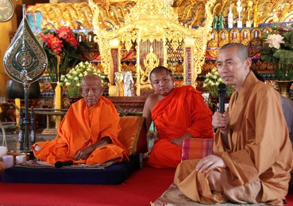 老挝僧王与常辉大和尚共同向随行大众开示南传上座部修行纲要
