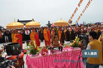 当地信众近万人参加了舍利安奉典礼(图片来源:凤凰网华人佛教)