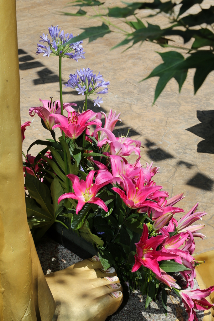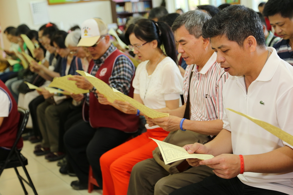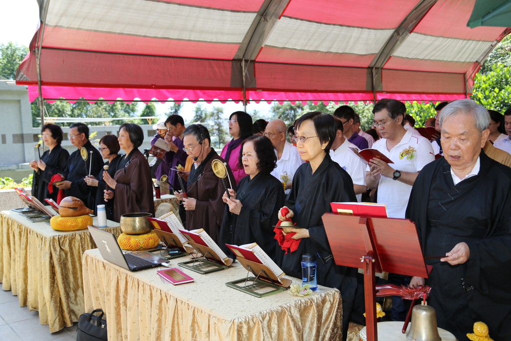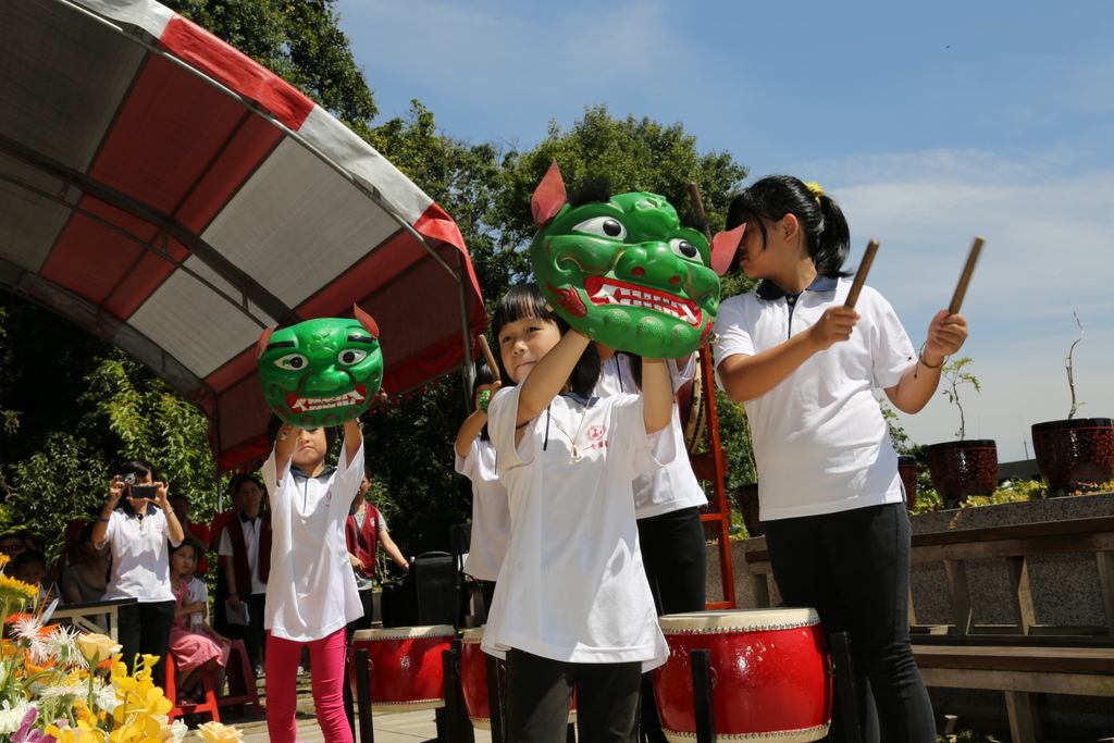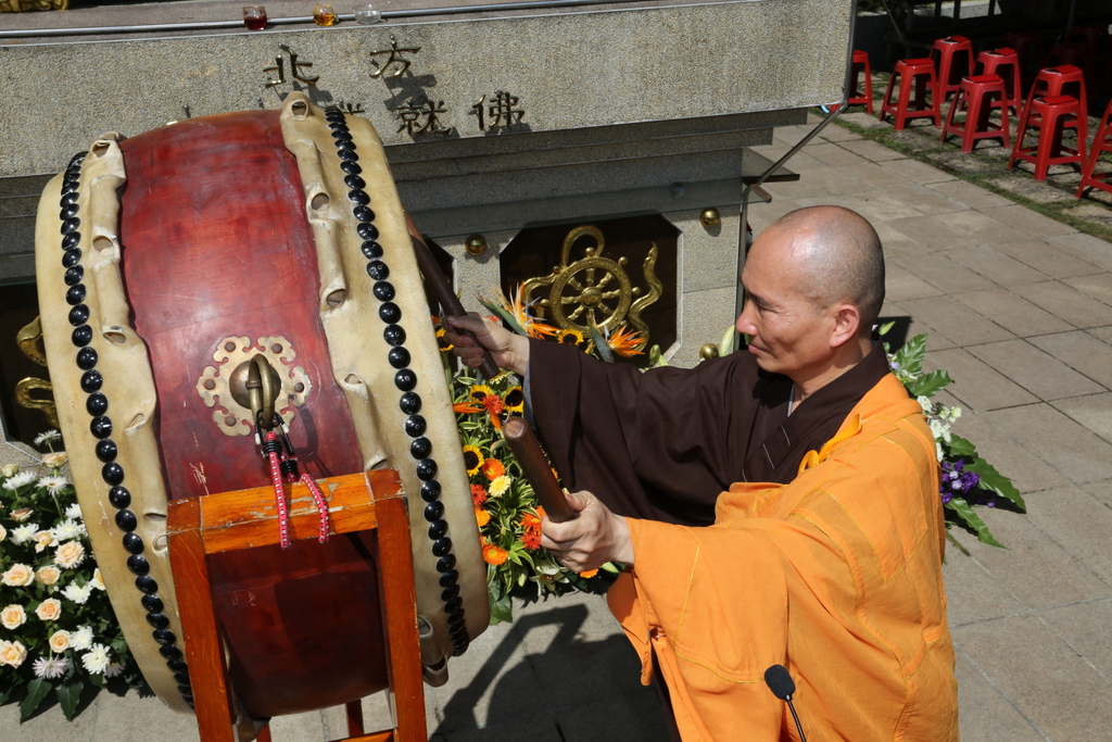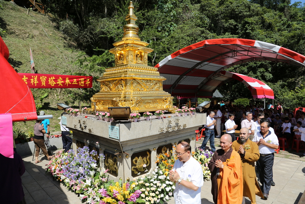 纪念庆典开始先由法缘法师击法鼓,寓意“击无上法鼓,妙音遍十方,慧眼见一切,利益无量众生”。其后嘉宾们代表献花,并绕世界和平吉祥塔。五周年供奉庆典上并安排有儿童们表演“罗汉戏狮”,及由台湾佛教善女人协会会长张玉玲会长以及音声研究中心副主任田运富博士带领青年们表演 “忏悔偈”、 “观音菩萨心咒” 以及 “般若波罗蜜多心经咒”。