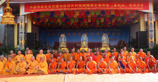 三尊到缅供奉的佛牙舍利塔(复制品) 北京灵光寺方丈常藏大和尚亲自主法 僧侣诵经 法会现场 虔诚的云南信众 合影留念