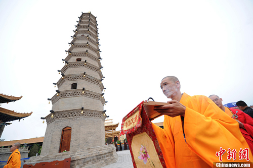 2013年6月9日,甘肃武威千年古刹鸠摩罗什寺举行了舌舍利塔的修复开光仪式。距今1600多年的鸠摩罗什舌舍利塔是第五次大规模修缮,古刹修缮资金200多万元全部来自于中国内地、泰国、印度等海内外信徒的捐助。鸠摩罗什在中国国佛教传播时期与真谛、玄奘、不空并称四大佛经翻译家,被誉为“译经泰斗”。