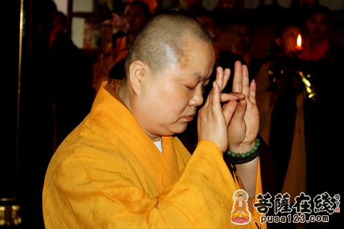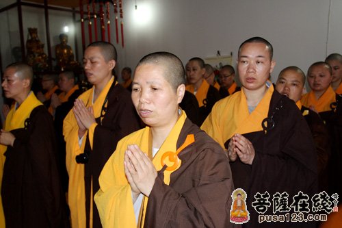 上午9时30分,果圣法师晋院法会正式举行,旃檀庵内彩带飘扬,鲜花簇拥。原成长老为果圣法师授衣、授钵、授珠、授具;定慧法师为果圣法师挂珠。果圣法师说法后,在仪仗队的护送下,缓行至圆通宝殿观世音菩萨像前,拈香、说法语、展礼三拜。原成长老为果圣法师接具送蒲团位,以表承继灵寺法脉。