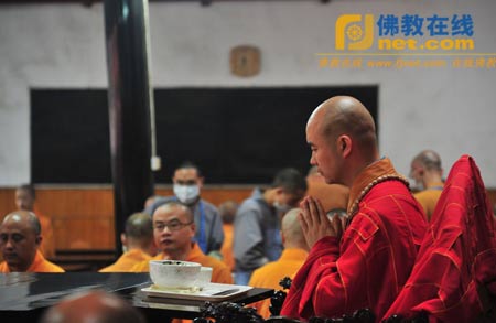 文殊院方丈宗性法师与一百位法师在观堂内慈悲应供(图:文殊院提供)