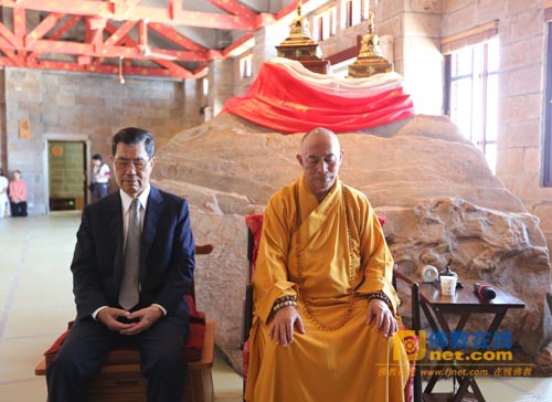 萧万长与心道法师一起开山圣殿中体验平安九分禅