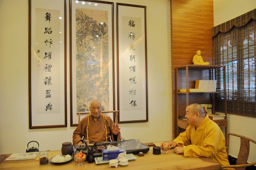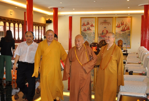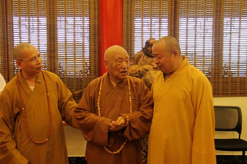 印顺大和尚还陪同性空长老和达义法师等一行参拜了已故佛门泰斗本焕长老的舍利,并共进午餐。