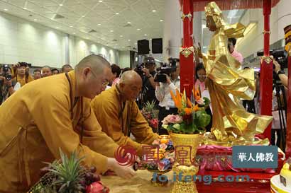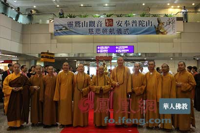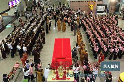 2013年6月26日下午13时,台湾灵鹫山多罗观音赴普陀山安奉慈悲启航仪式于台北桃园机场二航厦隆重举行。(图片来源:凤凰网华人佛教 摄影:曹立君)