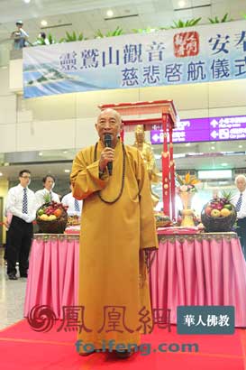 在多罗观音起驾仪式上,心道法师致辞。(图片来源:凤凰网华人佛教 摄影:曹立君)
