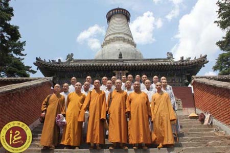 法门寺佛学院毕业班全体僧众一行在五台山塔院寺白塔前合影