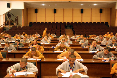 2013年7月4日上午,中国佛学院普陀山学院2013级本、预科新生招生入学考试,在学院国际会议中心礼堂(男众),和普陀山普济寺大斋堂(女众)同时开考,考试共分为佛学、历史政治、语文、英语四个科目,于4日、5日两天内完成考试。