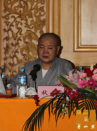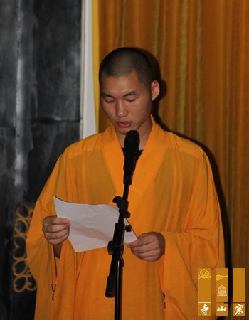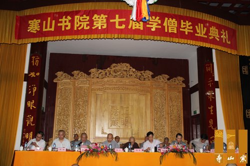 毕业典礼由秋爽大和尚主持,首先由寒山书院的中缘法师代表全体毕业学僧发言,随后书院老师宏奎法师、王海南代表书院老师发言,蒋行顺副局长发表讲话,明学长老,普仁大和尚也做了开示。