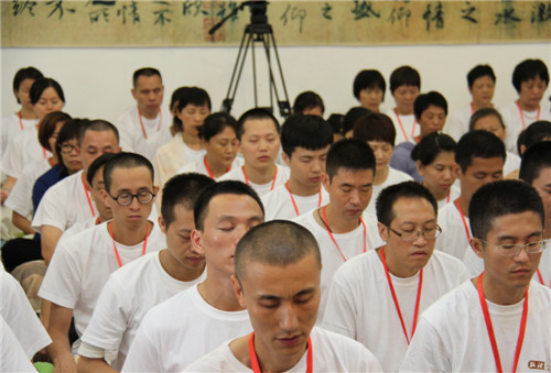 顿成法师给大家作了一场精彩的开示。学员精进学习,品尝佛法之清凉甘露,解开心头疑惑。一种和谐吉祥的喜气弥漫了整个活动现场。开示过后,顿成法师现场教学员如何打坐。