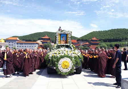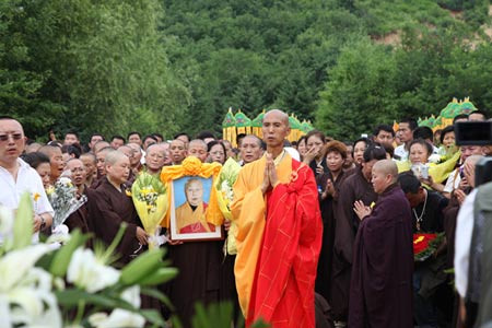 截止7月11日,正觉寺已收到来自海内外各界人士发来唁电百多件,挽联200多幅,花篮近千个。