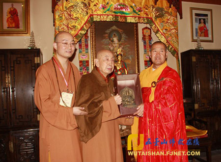 妙江大和尚向觉光长老赠送礼品