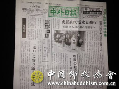 日本最大的佛教报纸——中外日报头版头条报道此次修行体验活动