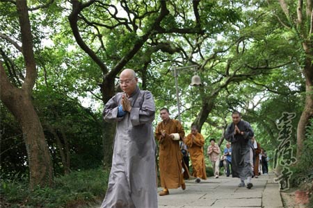 2013年7月13日,杭州灵隐寺方丈光泉法师率僧俗弟子20多人前往普陀山朝圣,以自己虔诚的朝圣之行现身说法,再次向世人展现了现代中国佛教僧人精进、正行、苦修、济生的清净庄严形象。