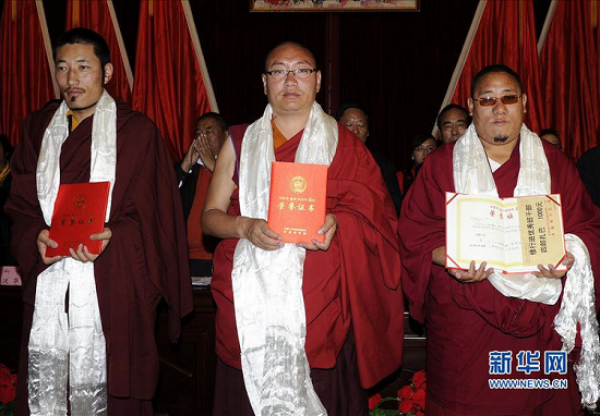 7月15日,西藏佛学院首届150名学员毕业典礼隆重举行。这150名学员是自2011年10月学院正式开院办学以来招收的第一批学员,学员来自全区七地(市),覆盖了五大教派的128座寺院,其中22名为活佛学员。
