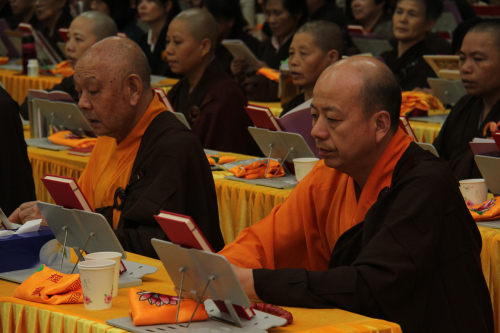 本次华严法会诵持《华严经》八十卷,上千四众弟子虔诚读诵大乘经典,积聚福慧资粮。每天上午八点开始由法师带领大众诵经至上供后供斋,下午两点开始诵经至四点半,上下午各诵两卷。殊胜无比,庄严隆重。