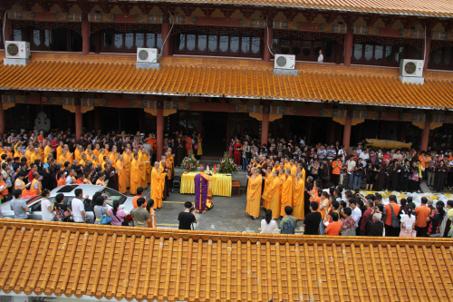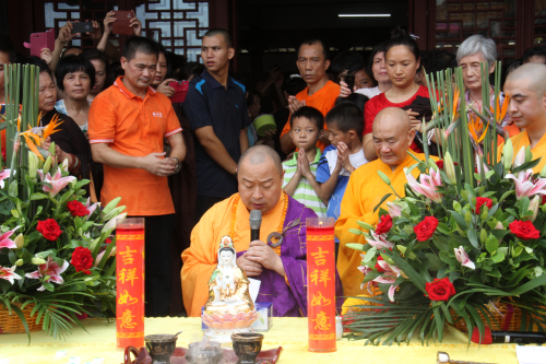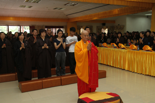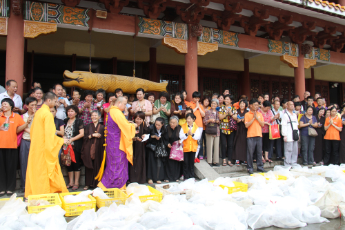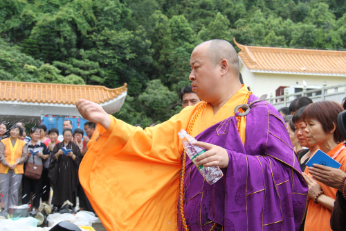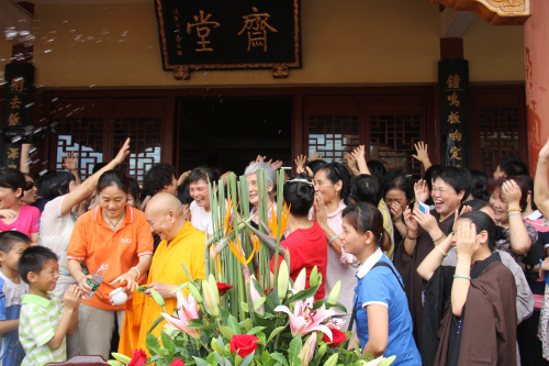 蓝天白云,阳光普照,斋堂前人头攒动,庄严喜庆。华严放生法会由中国佛教协会副会长、弘法寺方丈印顺大和尚主法。梵呗声中,印顺大和尚领诵放生仪轨并洒甘露,大众应和,场面壮观,人天欢喜,甚为殊胜;大众共同发愿、回向,众多鱼类和飞禽在印顺大和尚和法师们的慈悲加持中离苦得乐,至此,历时21天的华严法会圆满结束。