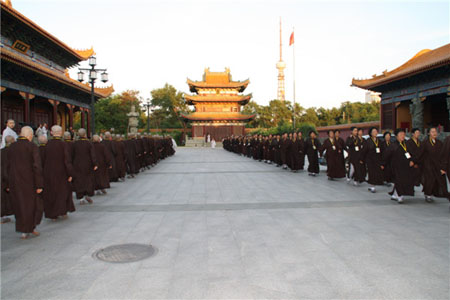 7月17日,为了调节短期出家学员的紧张生活,衍天法师于上午的讲法开示后,于下午带领学员们念佛,跑香,让学员们感受到佛法的活泼泼。众学员非常欢喜,学佛的信念更加坚定。