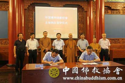 签字仪式上,国家宗教事务局机关服务中心丛国庆主任代表国家宗教事务局、中国佛教协会与北京市土地整理储备中心海淀区分中心主任签署了中国佛学院新校舍土地供应协议书。根据协议书,北京市海淀区将提供凤凰岭地区的249亩土地作为中国佛学院新校舍建设用地。
