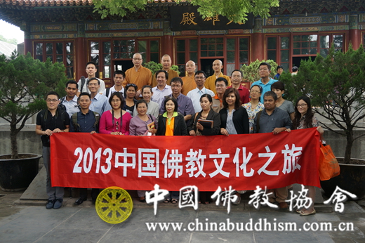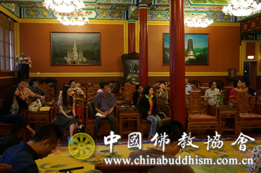 2013年7月22日上午,中外记者“2013中国佛教文化之旅”采访团一行20人拜访中国佛教协会,受到中佛协副秘书长张琳,副秘书长、广济寺住持演觉法师的热情接待。中佛协国际部主任普正法师、副主任王立,《法音》编辑部主任桑吉,以及广济寺知客等参加会见。