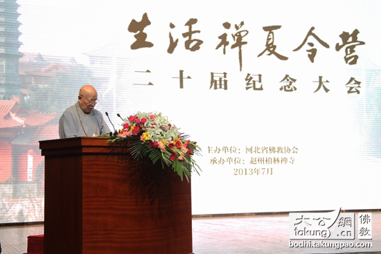 中国佛教协会会长传印长老致辞,长老对生活禅夏令营作出了高度的评价