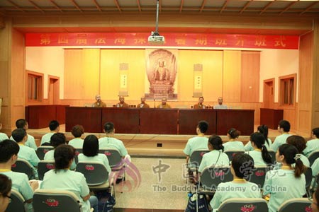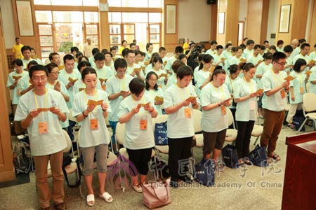 2013年7月25日上午,第四期法海探源佛教文化之旅开班式在中国佛学院礼堂举行。副教务长广如法师、培训部主任容通法师、副主任法广法师、海轮法师、传静法师、通行法师、通贤法师以及近百名学员参加了开班式。开班式由容通法师主持。