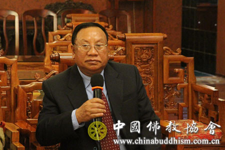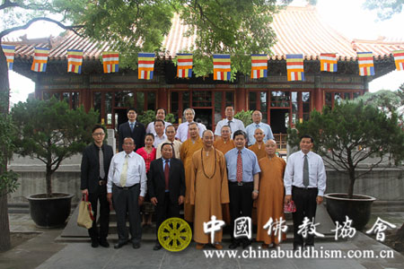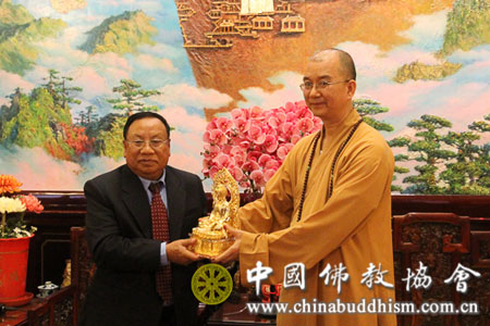 2013年7月29日下午,应全国政协邀请,来华访问的老挝建国阵线中央主席潘隆吉先生一行8人拜访中国佛教协会,受到中国佛教协会副会长学诚法师、秘书长王健先生的热情接待。
