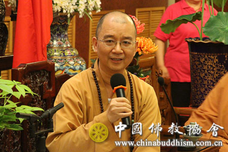 学诚法师在广济寺怀远堂亲切会见潘隆吉先生一行