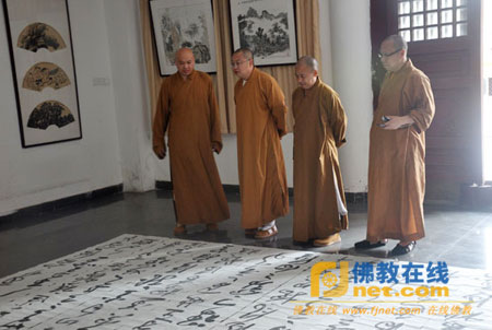 正慈法师即兴挥毫写下“令我早登无上觉;于十方界坐道场”墨宝