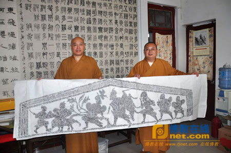 果光法师将汉画像石拓片赠与正慈法师