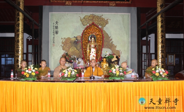 2013年8月1日,天童禅寺第七届“体悟禅慧 和谐人生”学修营在法堂隆重开幕。出席开幕式的有:浙江省佛教协会副会长、浙江慈云佛学院院长、宁波市佛教协会会长、天童禅寺方丈诚信大和尚,天童禅寺首座修祥老法师,天童禅寺首座、乐清市雁荡山能仁寺首座宏觉法师,监院计艺法师,知客圆通法师以及全体常住僧众和学修营100多名学员出席了开幕式。他们分别来自上海复旦大学、华东师范大学、宁波大学、浙江师范大学、上海外国语大学、中山大学、英国萨赛克斯大学、福建师范大学、香港浸会大学、香港中文大学等26所高校的学生和在职人员,覆盖浙江地区、上海、杭州、河南、湖北、山东、江西、厦门等15个省市地区。开幕式由知客道国法师主持。