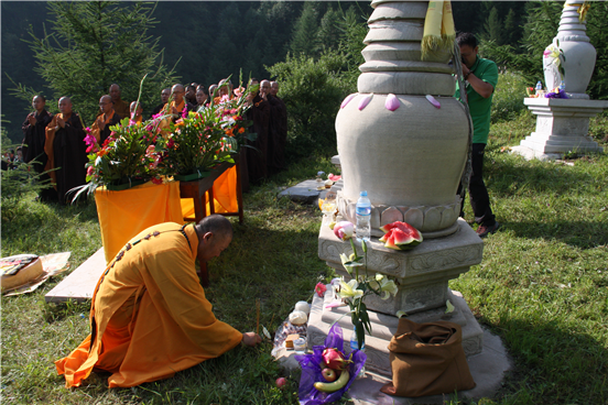 上午9点,全国政协委员,中国佛教协会副会长,山西省佛教协会会长,五台山碧山十方广济茅篷方丈,五台山竹林寺佛学院住持上妙下江大和尚,带领僧众以及善信扫塔。