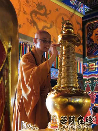 敕勒川国恩寺监院顿广法师拈香(图片来源:菩萨在线)
