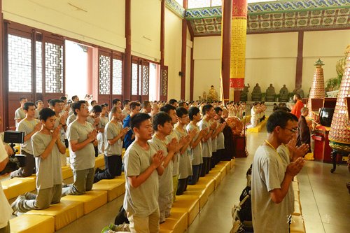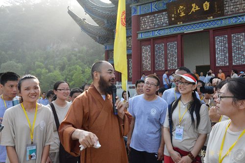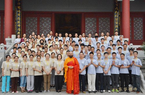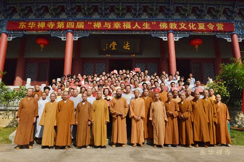8月5日,七天的夏令营生活即将结束,在东华禅寺法堂内,万行大和尚、佛教在线安虎生总干事、郑振煌教与四众四弟、大学生营员们共同参加了第四届“禅与幸福人生”夏令营闭营仪式。