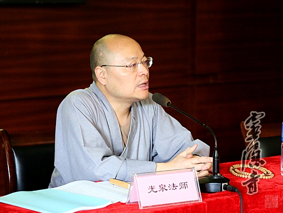 光泉大和尚在研讨会上作了简短开示,他肯定了灵隐寺外文网站建设所取得的成绩,同时也提出了发展目标,要求把灵隐寺外文网站建设成为佛教界的典范和外文世界读者信众了解和认识佛教的重要窗口!