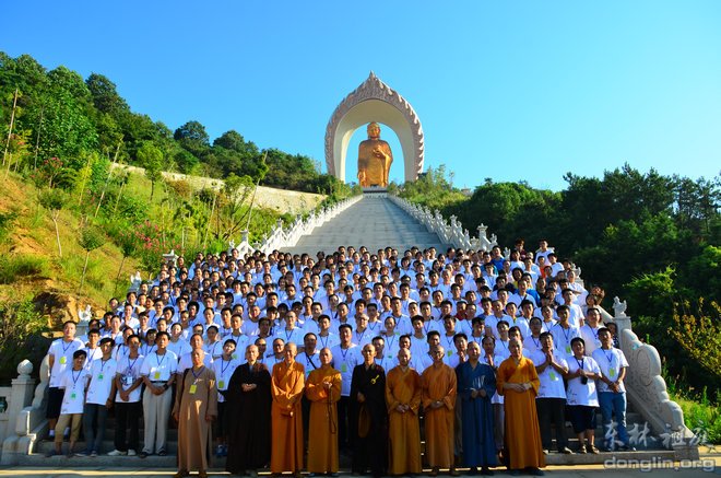 全部活动结束后,在极乐路的台阶上,全体参加法会的人员合影留念。